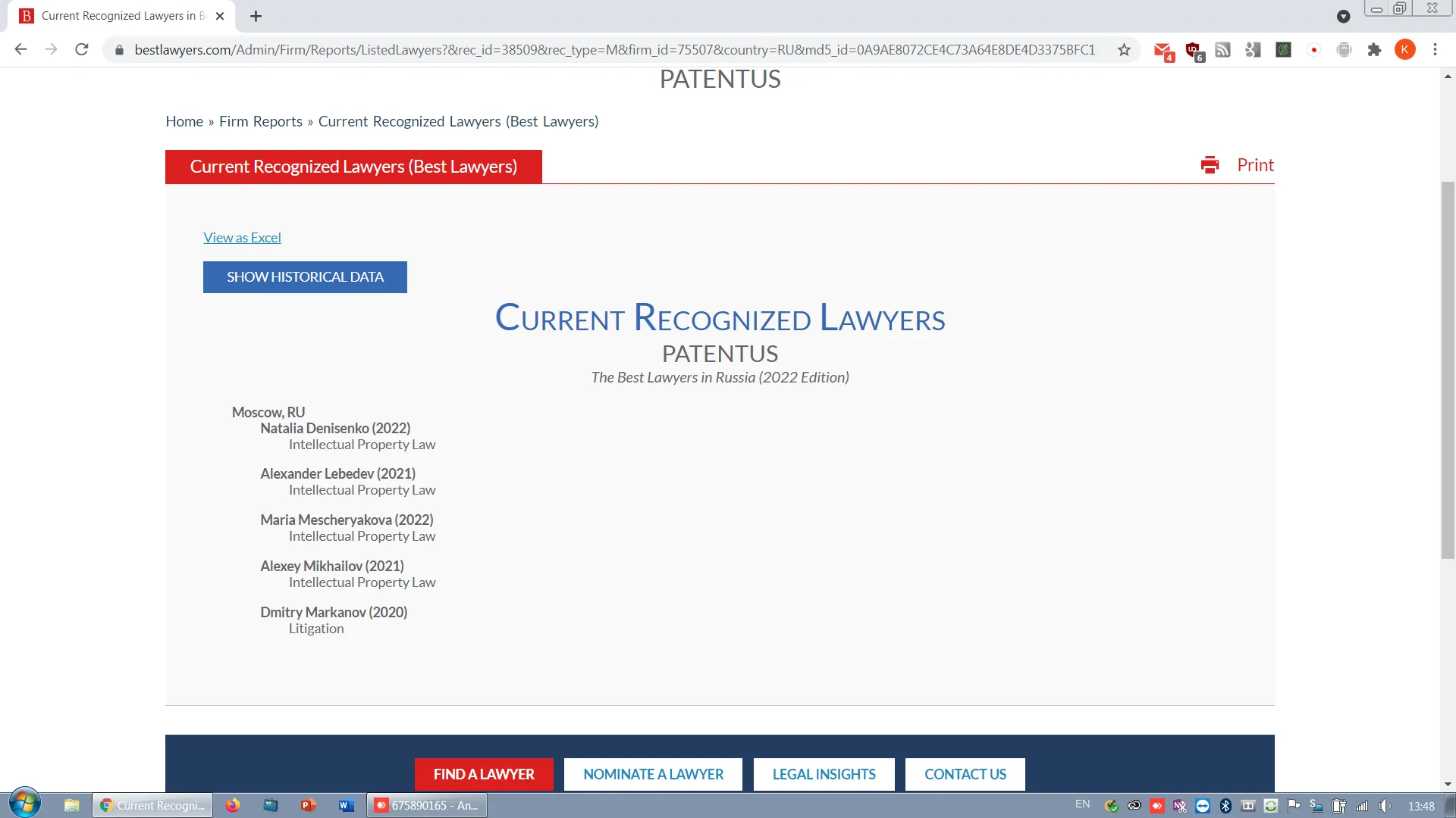 Managing partner of PATENTUS Dmitry Markanov, the Head of the Patent Department Alexey Mikhailov, Deputy Head of Court and Disputes Department Maria Meshcheryakova, Senior Expert Natalia Denisenko and Of Counsel Alexander Lebedev have been recognized by the ranking agency Best Lawyers.